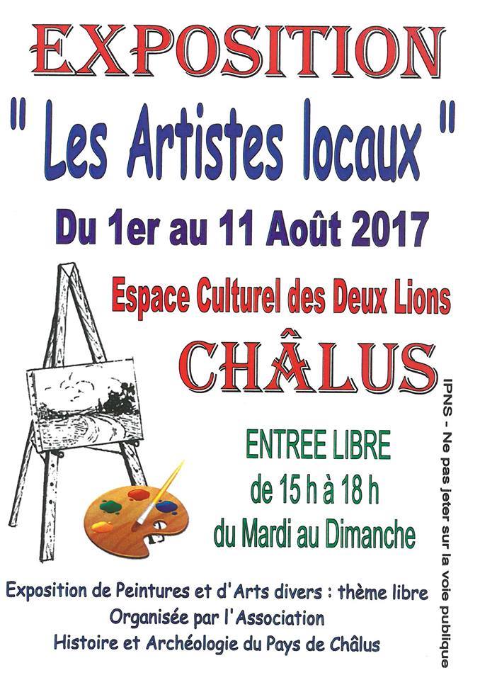 Du 1er au 11 août 2017 : Exposition "Les Artistes Locaux", peintures et sculptures.