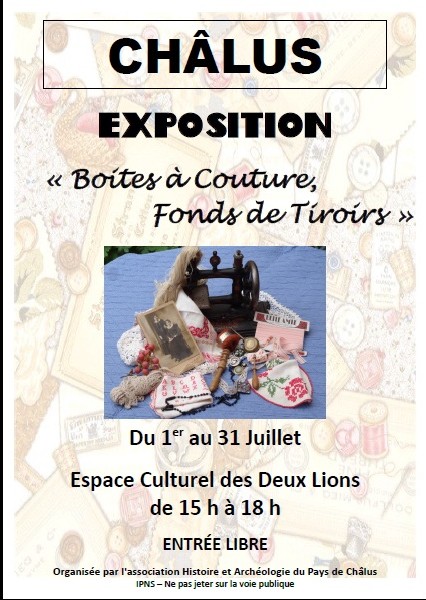Du 1er au 31 Juillet 2016 : Exposition "Boites à Couture, Fonds de Tiroirs" à Châlus.