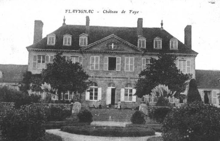 À la fin du xviiie siècle, le vieux château de Faye fut remplacé, à l'initiative de la famille Villoutreix de Faye, par le château actuel dû à l'architecte Joseph Brousseau.